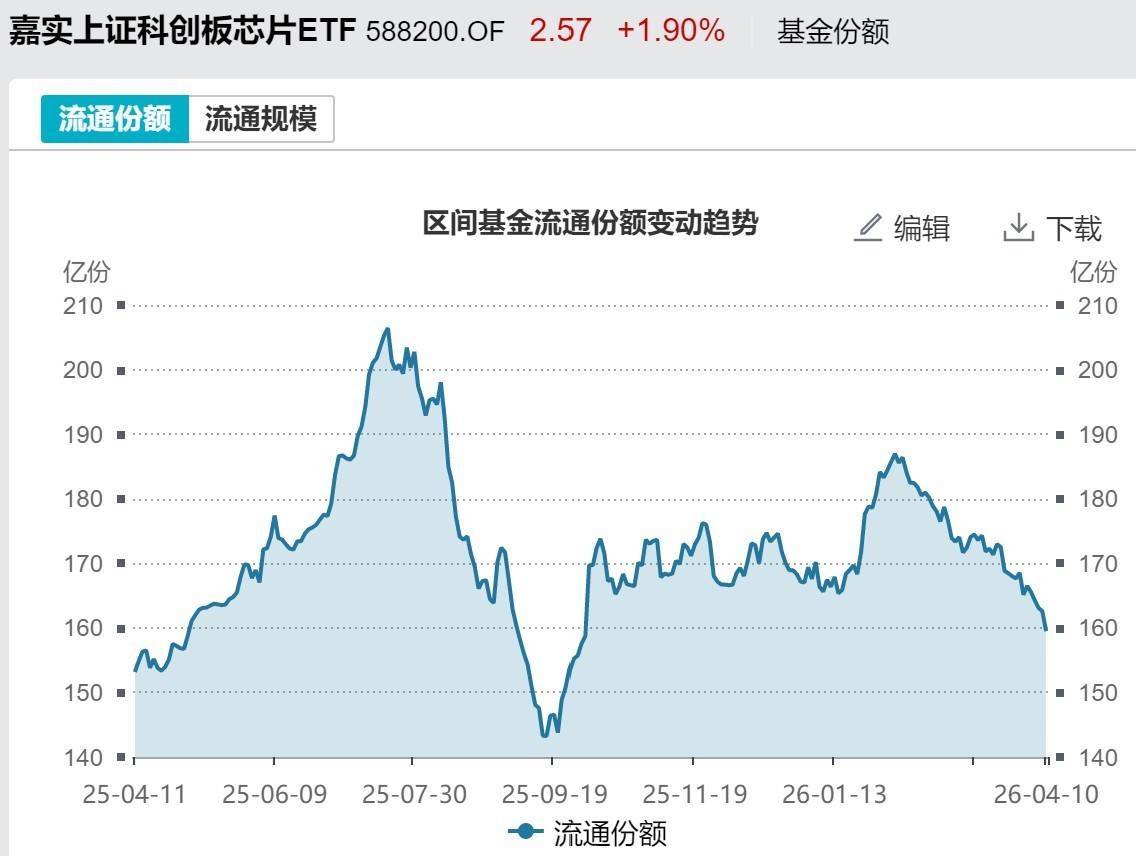 另外,芯片板块近期被资金抛售,干系ETF份额捏续回落。