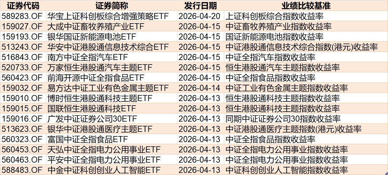 现在有15只ETF线路下周刊行,追踪方向为科创创业东谈主工智能、电力、食物、港股通科技等。