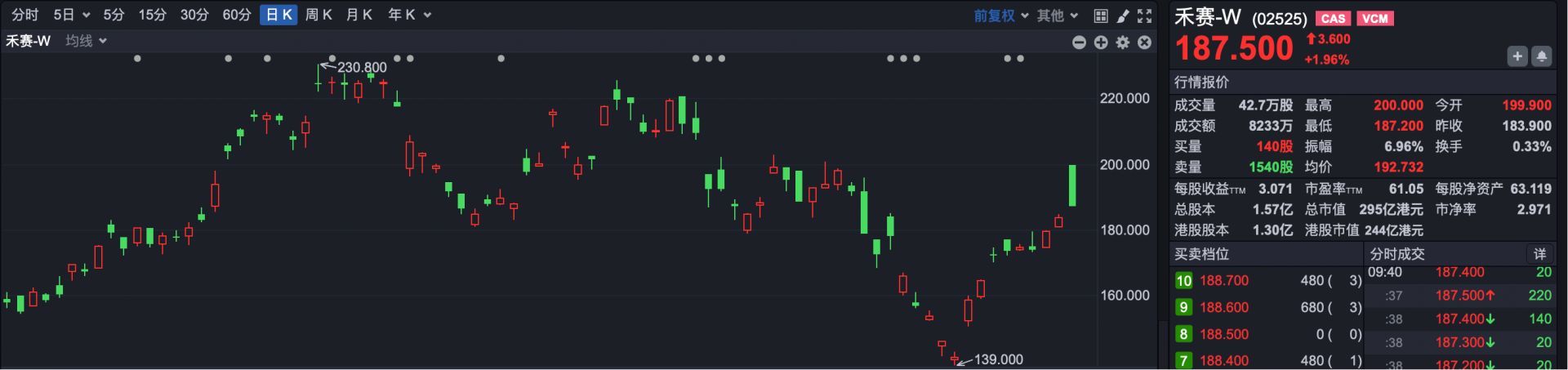 禾赛-W(HK02525)早盘高开超8%,公司当天起调入港股通地方名单。