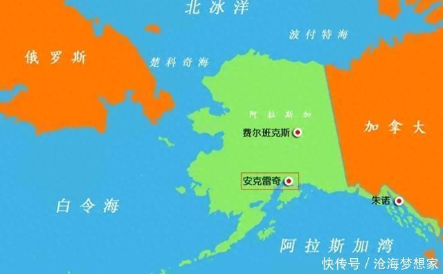 阿拉斯加原是俄罗斯飞地,后因克里米亚干戈俄以720万好意思元的价钱卖给好意思国,成为好意思国最大的一个州。它与俄罗斯隔着白令海,白令海峡是通往北极的咽喉要说念,阿拉斯加州面积151.88万正常公里,东说念主口74万多。