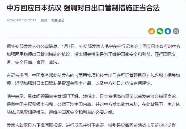 但这种抗议在冷飕飕的经济账单眼前显得如斯煞白,日本泰斗商量机构的数据早就摆在那,要是中国对日本的稀土出口握住要领不时90天,日本的经济赔本将顷刻间飙升至几千亿日元。 震悚热枕早已在日本市集扩张,他们焦躁地洽商最新的握住要领是否包含稀土居品,以及中方如何看待日方的抗议。 中国的酬谢纲兴目张,中日关系之是以酿成这么,问题的根源在于日本首相高市早苗公然干预中国内务,甚而发出武力挟制。